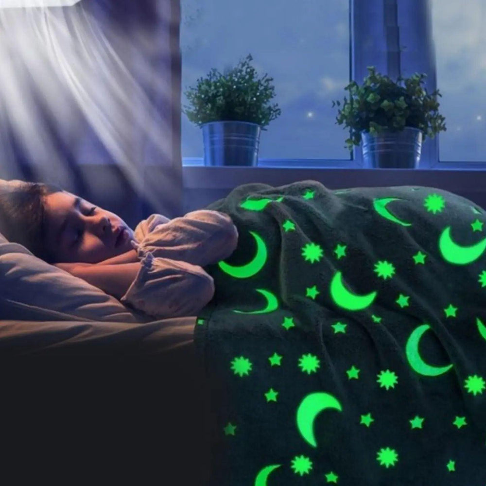 Naše Magično svetleće ćebe je napravljeno od mekog i izdržljivog pamuka, sa odštampanim zvezdicama i mesecima koji svetle u mraku i poboljšavaju vaše snove.